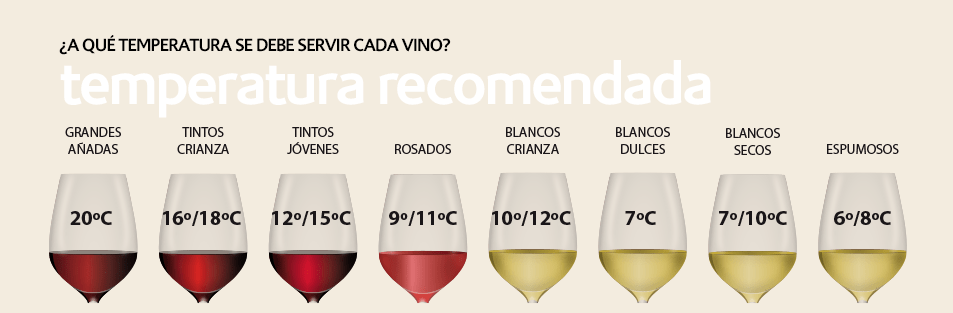 La temperatura adecuada para mantener los vinos óptimos para su consumo es algo muy importante ya que si no tienen una temperatura adecuada el mismo no dada el 100% de sus características tanto de gusto como de sabor.